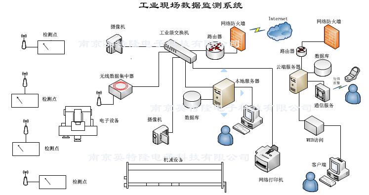 上述三种数据中,最难获取的是第二类数据,是产业升级中实现过程自动化、机械制造自动化、管理自动化的关键数据来源依据;过去由于一些关键技术和设计难点没有解决,不具备现场实施的可行性,如对应用场景及功能定义、设计构思不明确、设计对象的沟通与衔接等。现今基于IOT、互联网、嵌入式等技术,面向对象,模块化设计、程序化开发,能够准确、实时地获取设备过程数据。本产品采用底层无线自组网(Node),无线网关数据汇聚,使用MODBUS协议和MQTT协议,借助433M/2.4G、GPRS、WIFI等无线网络,同时也支持有线网络,可以稳定、可靠地将数据上传至服务器。